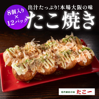 最新の冷凍技術でお店で食べるたこ焼きに負けないたこ焼きができました。もちろん、お店で一つ一つ丁寧に手焼きしております。試作を重ねた結果美味しく冷凍するために、たこ焼きは店舗に比べ、小粒になっております。